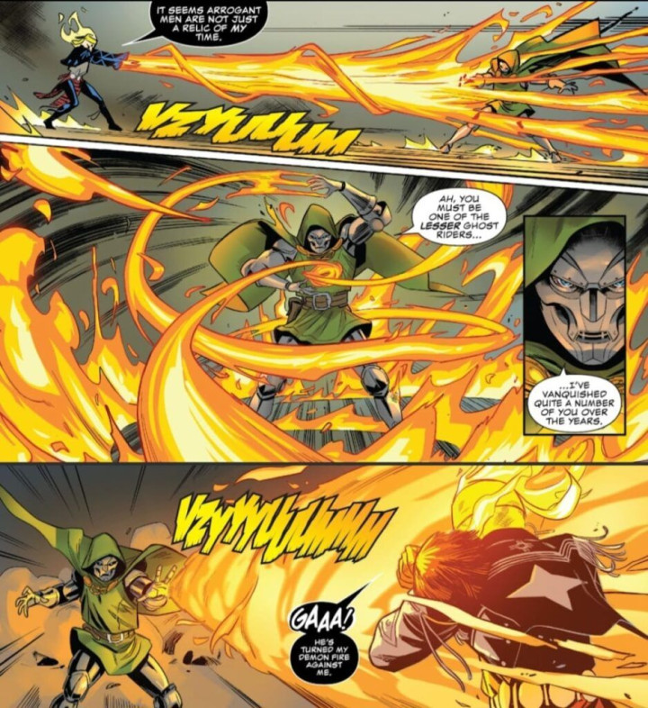 恶灵骑士挥舞火焰锁链,狂抽毁灭博士的装甲!